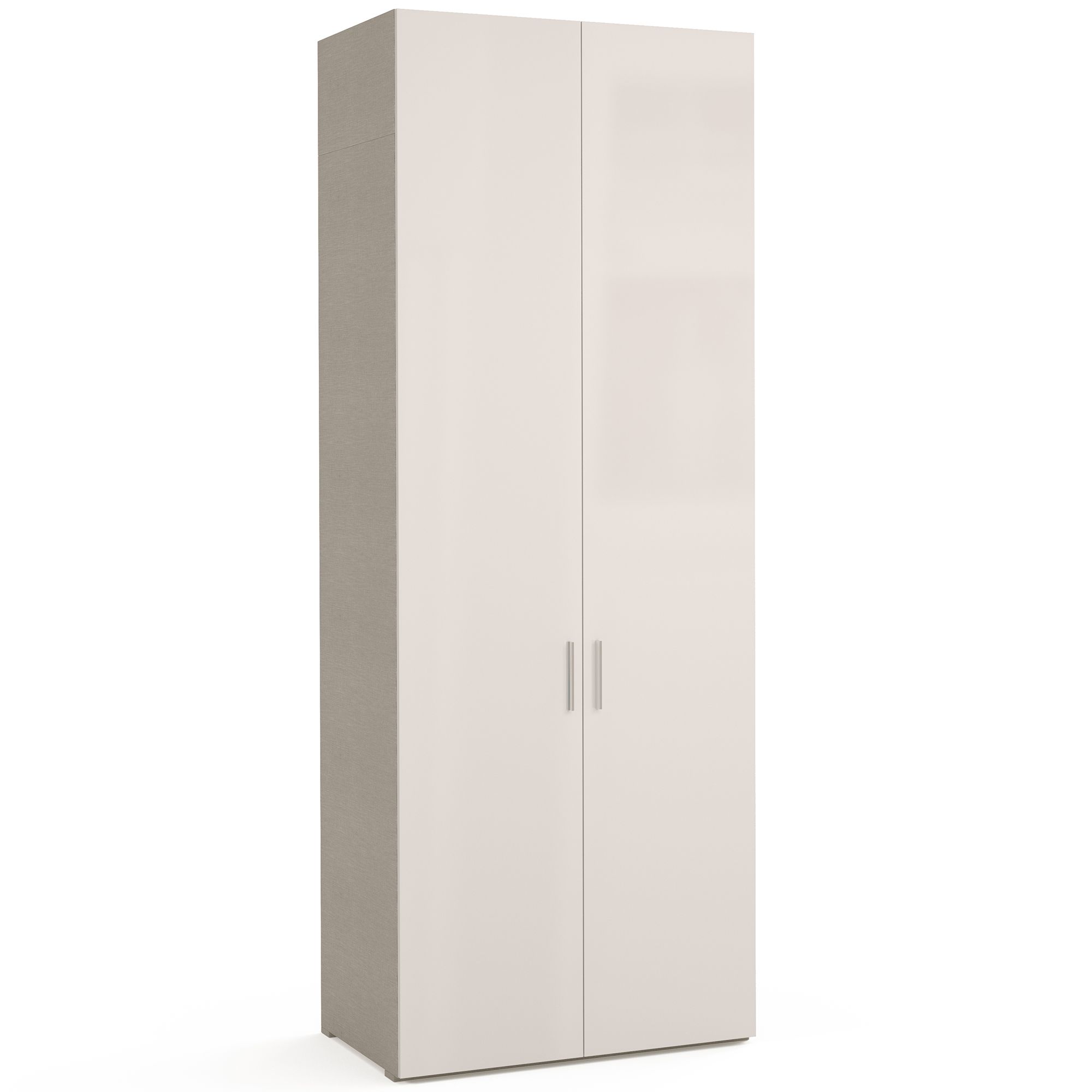 Двухдверный шкаф ESTE оснащен антресолями, увеличивающими его высоту, что позволяет использовать по максимуму свободное пространство под потолком. Фасады шкафа выполнены в отделке Белый глянец. Внутреннее пространство оформлено в текстуре Шенилл, воспроизводящей рисунок плетения натуральной ткани. Наполнение шкафа представляет собой систему из трех полок, к нижней из которых крепится штанга для вешалок. Шкаф оснащен встроенным светильником, который включается автоматически при открывании дверей (система включения светильника с трансформатором заказываются отдельно). В комплектацию включены ручки в отделке Хром-глянец. Предусмотрена возможность замены на ручки в отделке Черный никель. ВАЖНО! Глубина шкафа указана без учета фасада, высота – без учета карниза. Боковые стенки и карнизы заказываются отдельно.