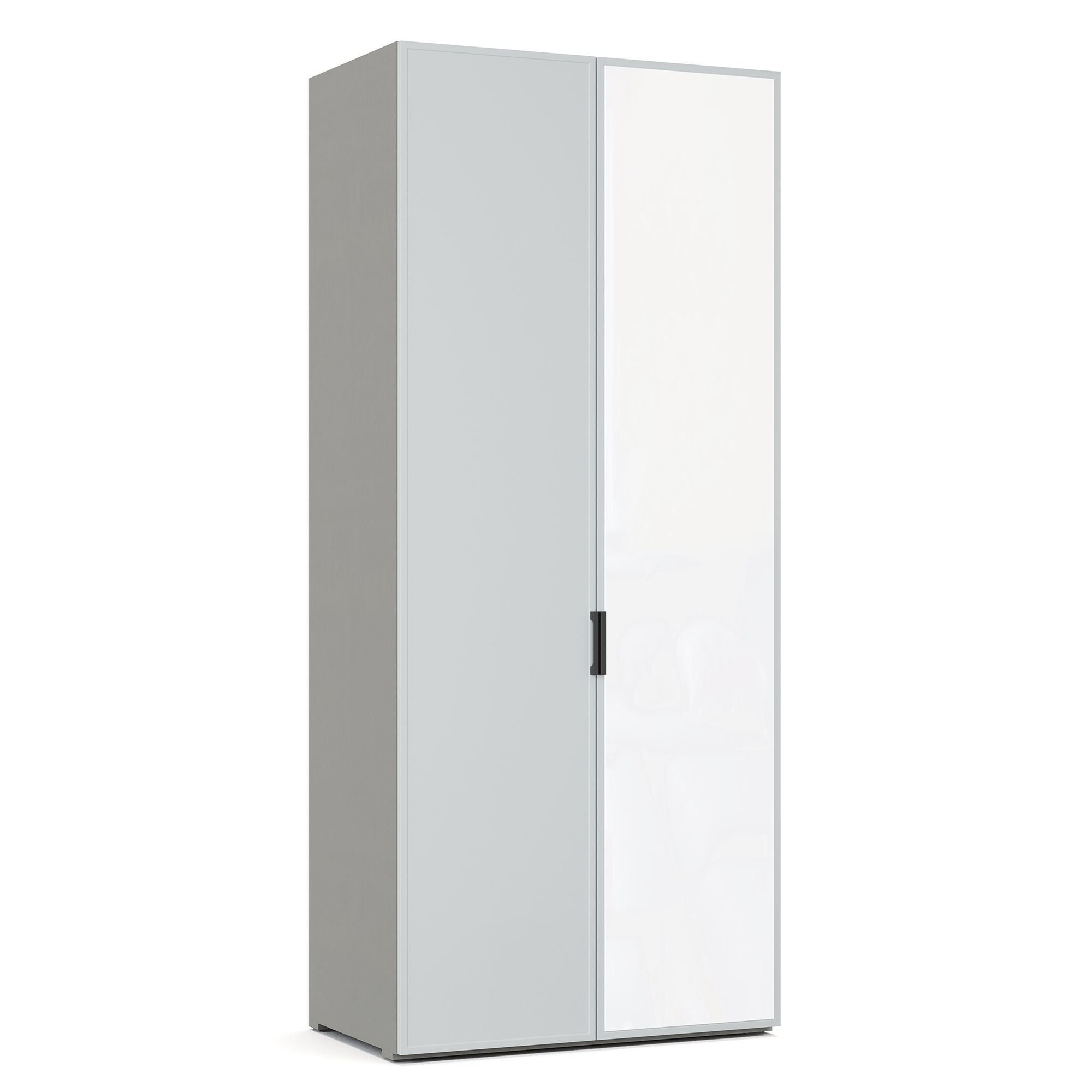 Внутреннее наполнение двухдверного шкафа NAPOLI представляет собой систему из двух полок, к нижней из которых крепится штанга для вешалок. Один из фасадов декорирован тонкой рамкой, второй представляет собой единое зеркальное полотно (возможно расположение зеркального фасада как справа, так и слева). Корпус выполнен в текстуре Шенилл. Шкаф оборудован встроенным светильником (система включения заказывается отдельно). ВАЖНО! При использовании в качестве отдельно стоящего модуля, завершающего элемента композиции или рядом с угловым шкафом обязательно оснащение боковыми стенками (заказываются отдельно). Эксплуатация без них дизайном не предусмотрена.