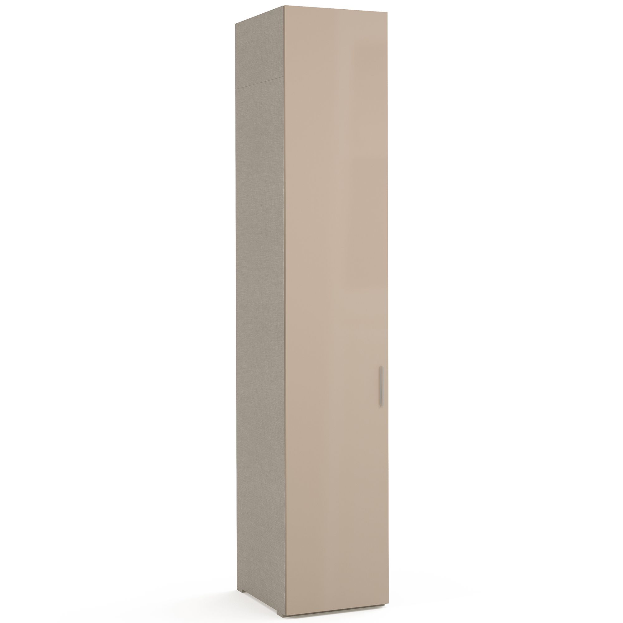 Однодверный шкаф ESTE оснащен антресолями, увеличивающими его высоту, что позволяет использовать по максимуму свободное пространство под потолком. Фасад шкафа выполнен в отделке Глянец Mokko. Внутреннее пространство оформлено в текстуре Шенилл, воспроизводящей рисунок плетения натуральной ткани. Наполнение шкафа представляет собой систему из трех полок, к нижней из которых крепится штанга для вешалок. В комплектацию включены ручки в отделке Хром-глянец. Предусмотрена возможность замены на ручки в отделке Черный никель. ВАЖНО! Глубина шкафа указана без учета фасада, высота – без учета карниза. Боковые стенки и карнизы заказываются отдельно.
