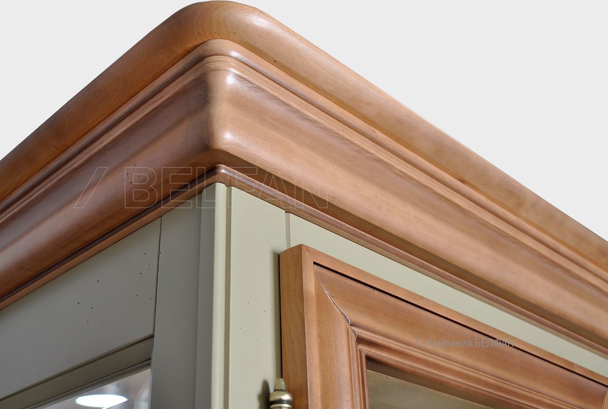 Двухдверный шкаф с витриной «Оливия» порадует любителей прямых и лаконичных форм. Высокий многослойный карниз, фигурные цоколи, червоточины и тёмная патина – дань стилю Прованс, под вдохновением которого создавалась коллекция «Оливия». Шкаф оснащен подсветкой, которая эстетично отражается в зеркальной задней стенке и создает дополнительную игру света. Благодаря обилию стеклянных элементов, шкаф обладает легкостью и способен привнести в любой интерьер воздушность и нежность.