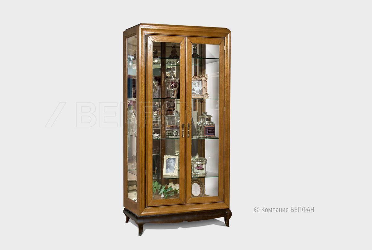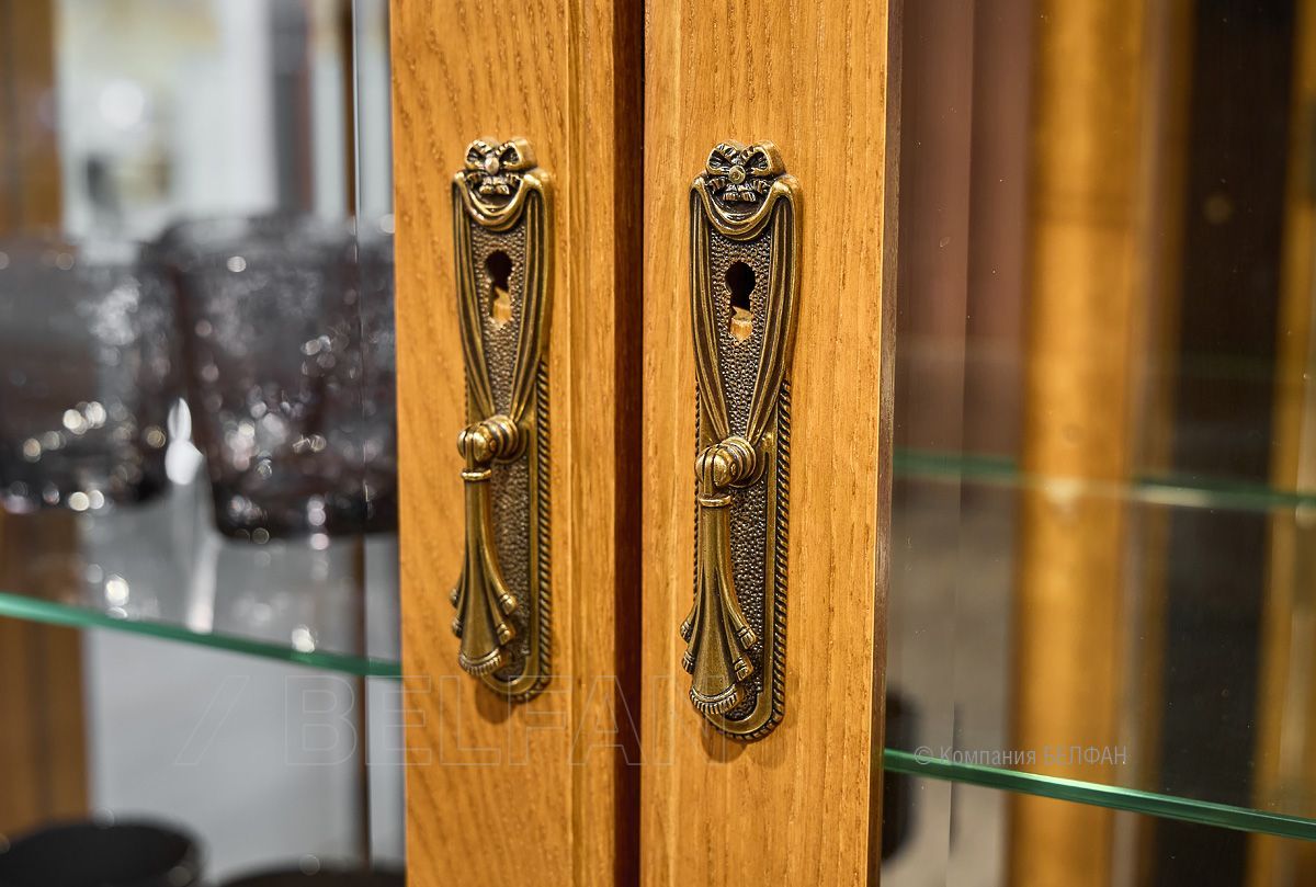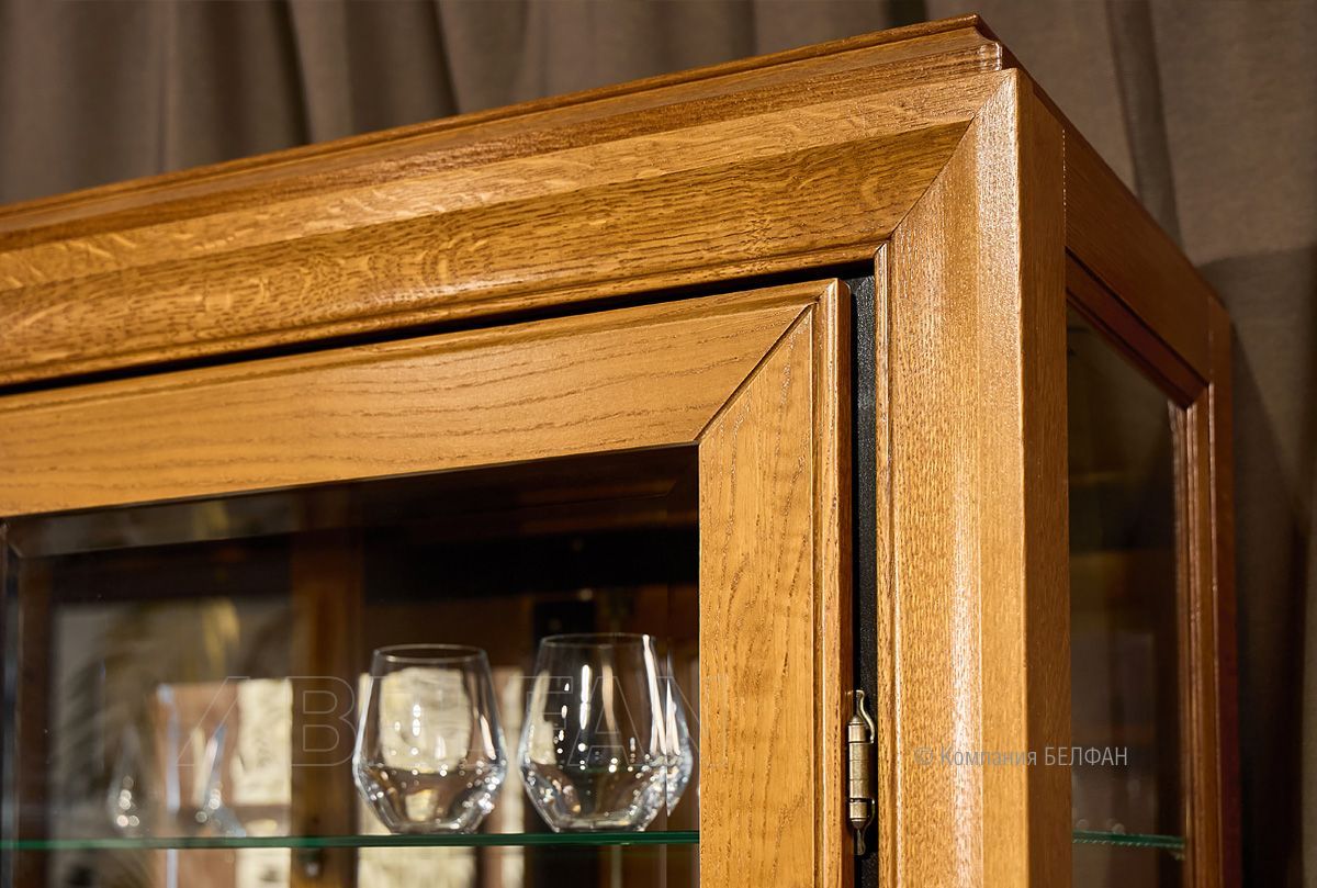 ? Витрина изготовлена из массива и шпона дуба.