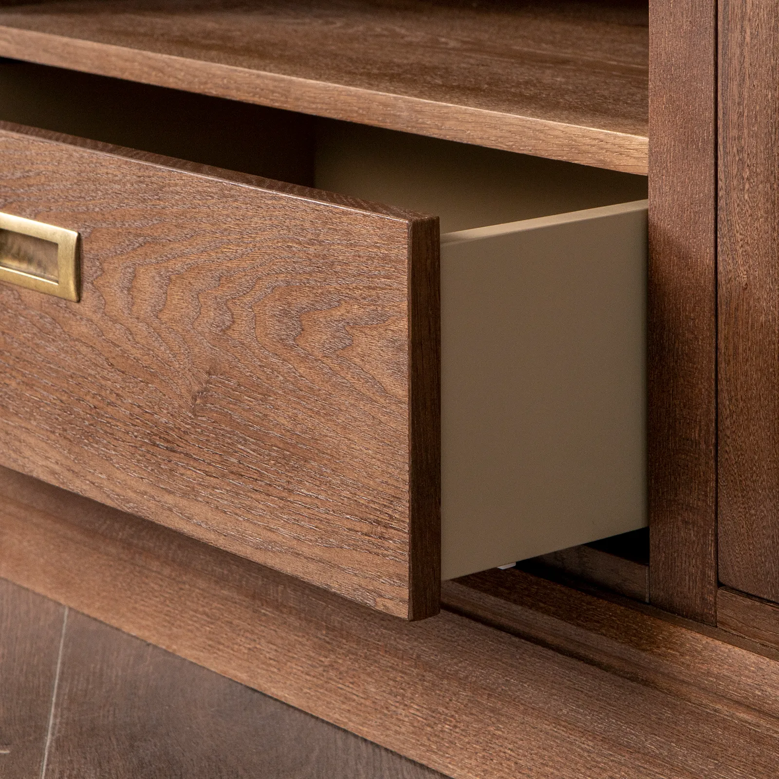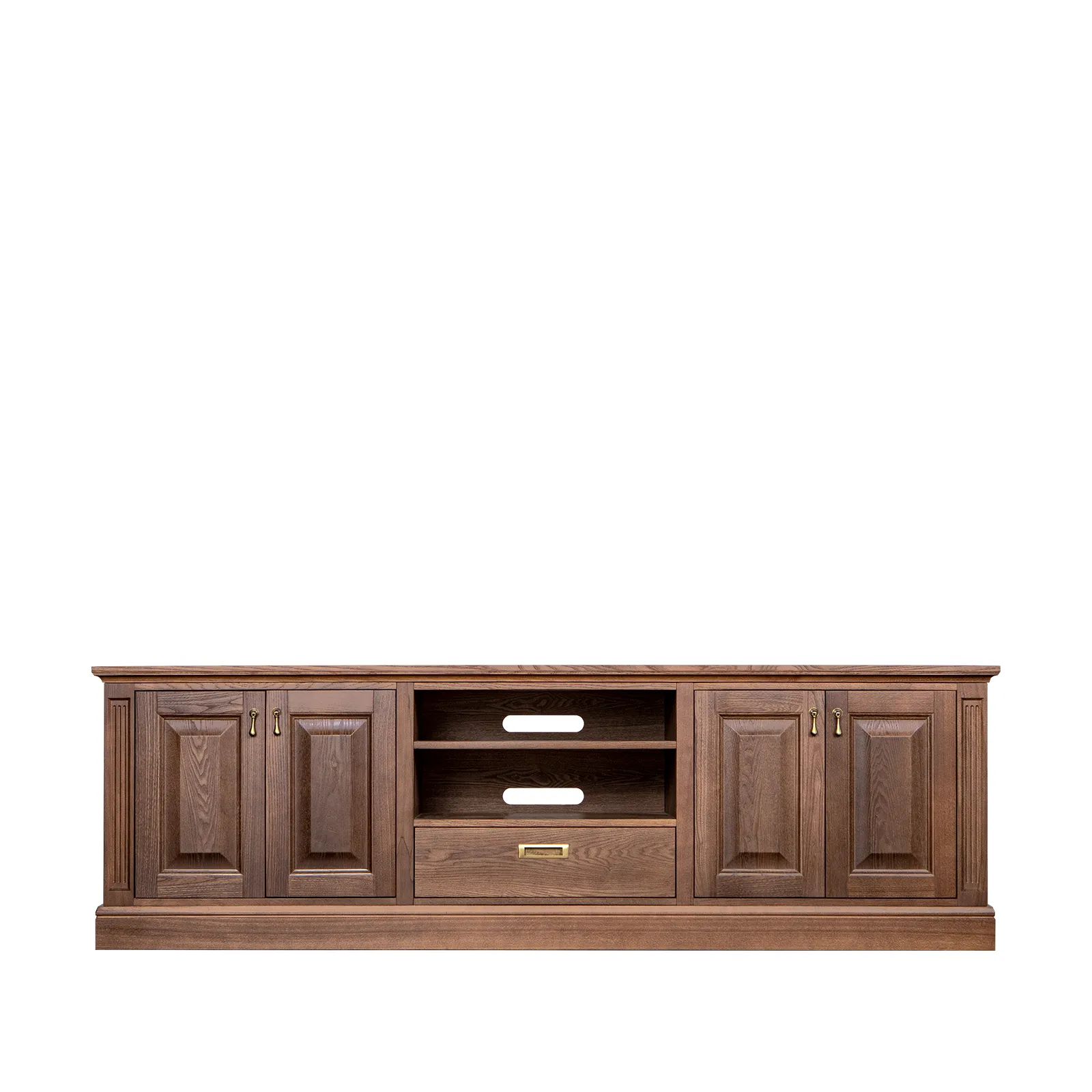 Медиа-тумба с 7-ю выдвижными ящиками коллекции Timeless из шпона вяза в морилке с сохранением фактуры дерева.