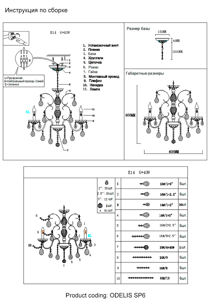 Люстра Crystal Lux ODELIS SP6 GOLD ODELIS SP6 GOLD