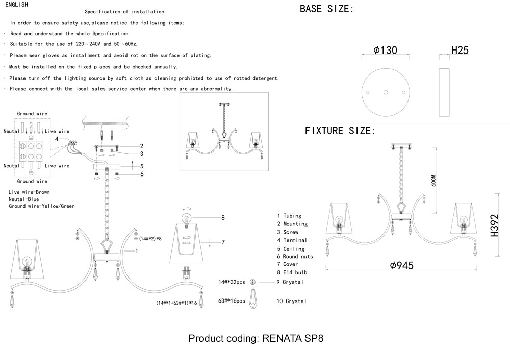 Люстра Crystal Lux RENATA SP8 GOLD RENATA SP8 GOLD
