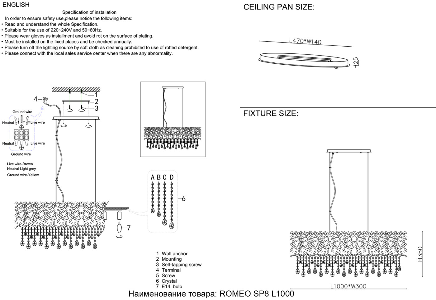 Люстра Crystal Lux ROMEO SP8 GOLD L1000 ROMEO SP8 GOLD L1000