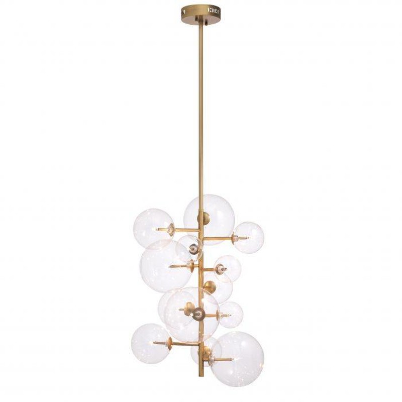 Выбираете между винтажным и современным дизайном? Вы можете получить и то, и другое с люстрой Ezra от Eichholtz. Эта красивая подвесная лампа осветит вашу гостиную своим сверкающим внешним видом. Ее тонкая ножка имеет каркас из античной латуни и содержит гроздь прозрачных стеклянных сфер. Разместите несколько штук на разной высоте, чтобы создать красивую акцентную гроздь.