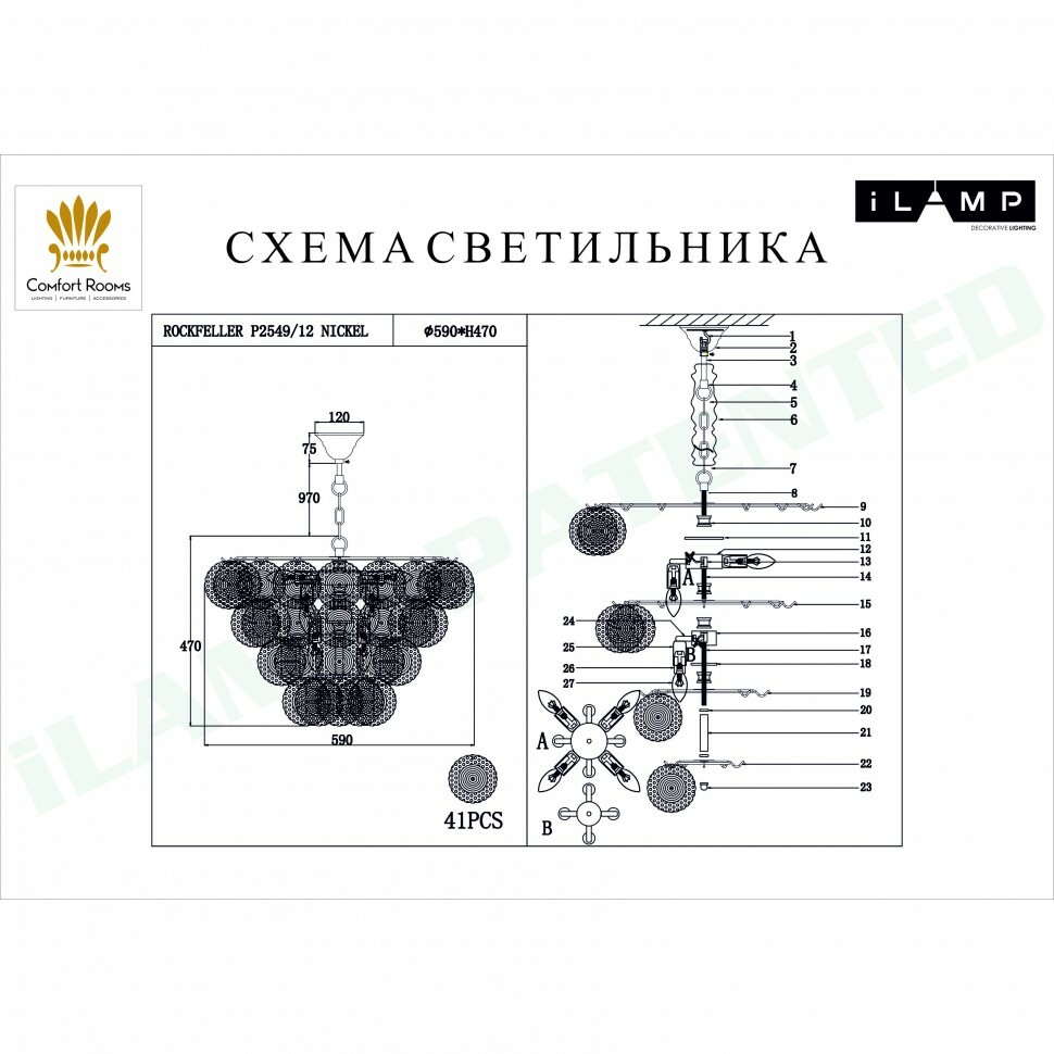 Подвесная люстра iLamp Rockfeller P2549-12 Nickel P2549-12 NIC