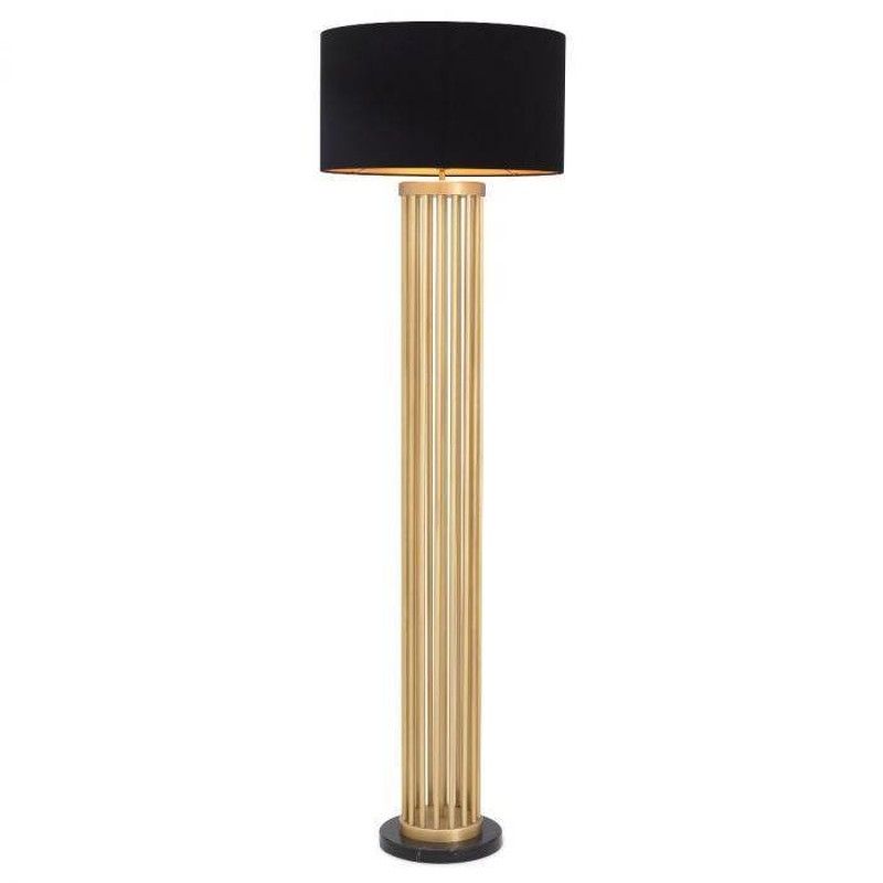 Этот современный торшер Condo от Eichholtz, установленный на подставке из черного мрамора, излучает сдержанный шарм. Его цилиндрическое основание состоит из металлических стержней с отделкой из брашированной латуни.