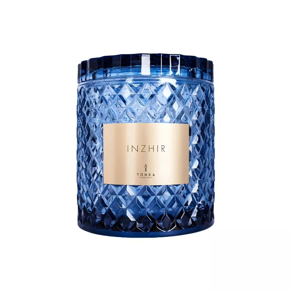Аромасвеча Инжир 2000 мл, стакан синий, деревянный короб со стеклом, Тонка Парфюм