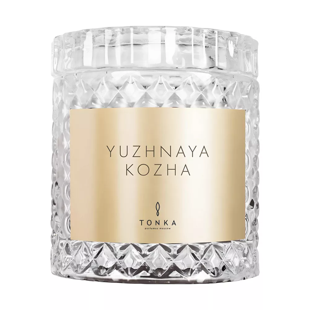 Аромасвеча Южная кожа 220 мл, стакан прозрачный, фирменная упаковка, Тонка Парфюм