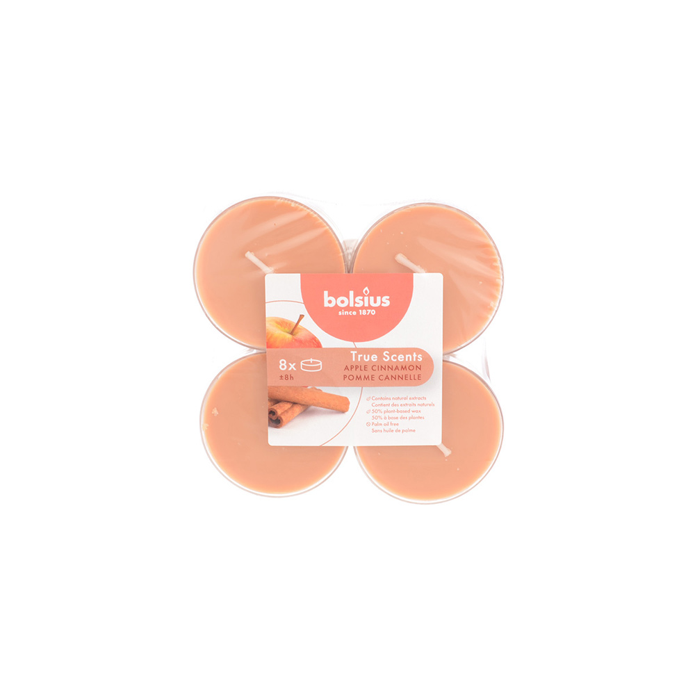 Свечи чайные True scents 8 шт, яблоко с корицей, Bolsius