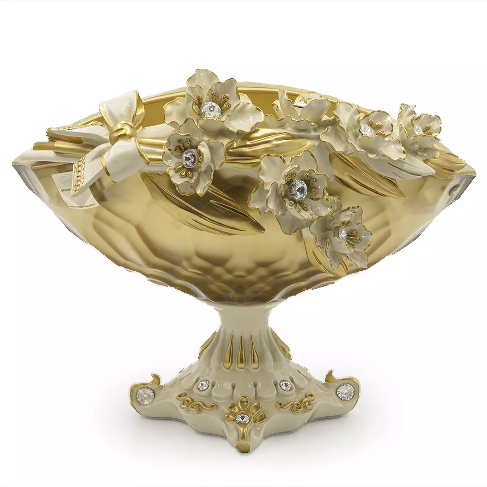 Салатник овальный на ножке Аморе, 34 см, кремовый/золотой, Cevik