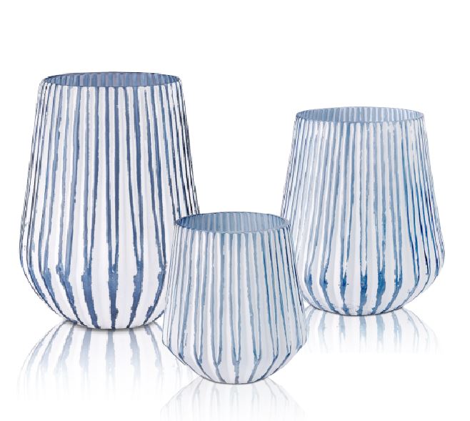 Ваза-подсвечник из голубого стекла с белой патиной. Изысканное украшение для вашего дома.
