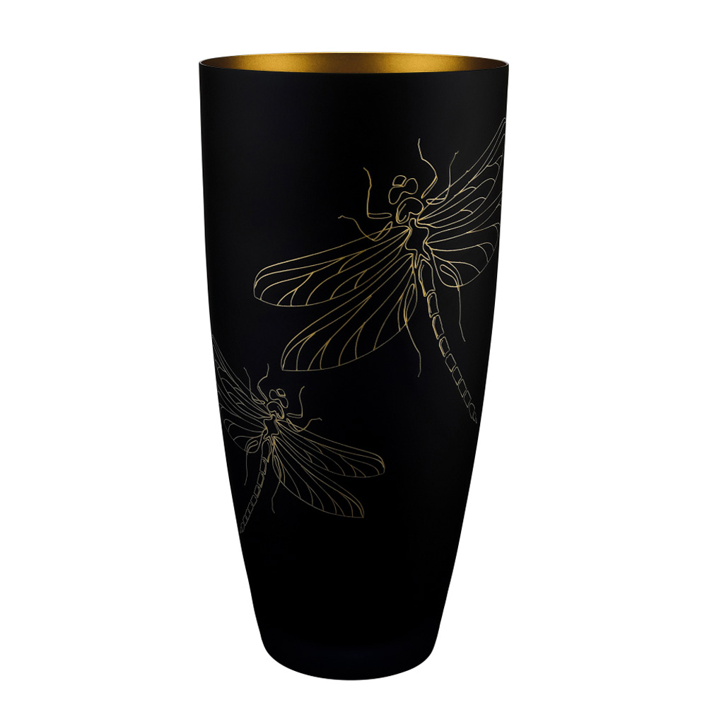 Ваза Стрекоза, черный фон H 30 см, Crystalex
