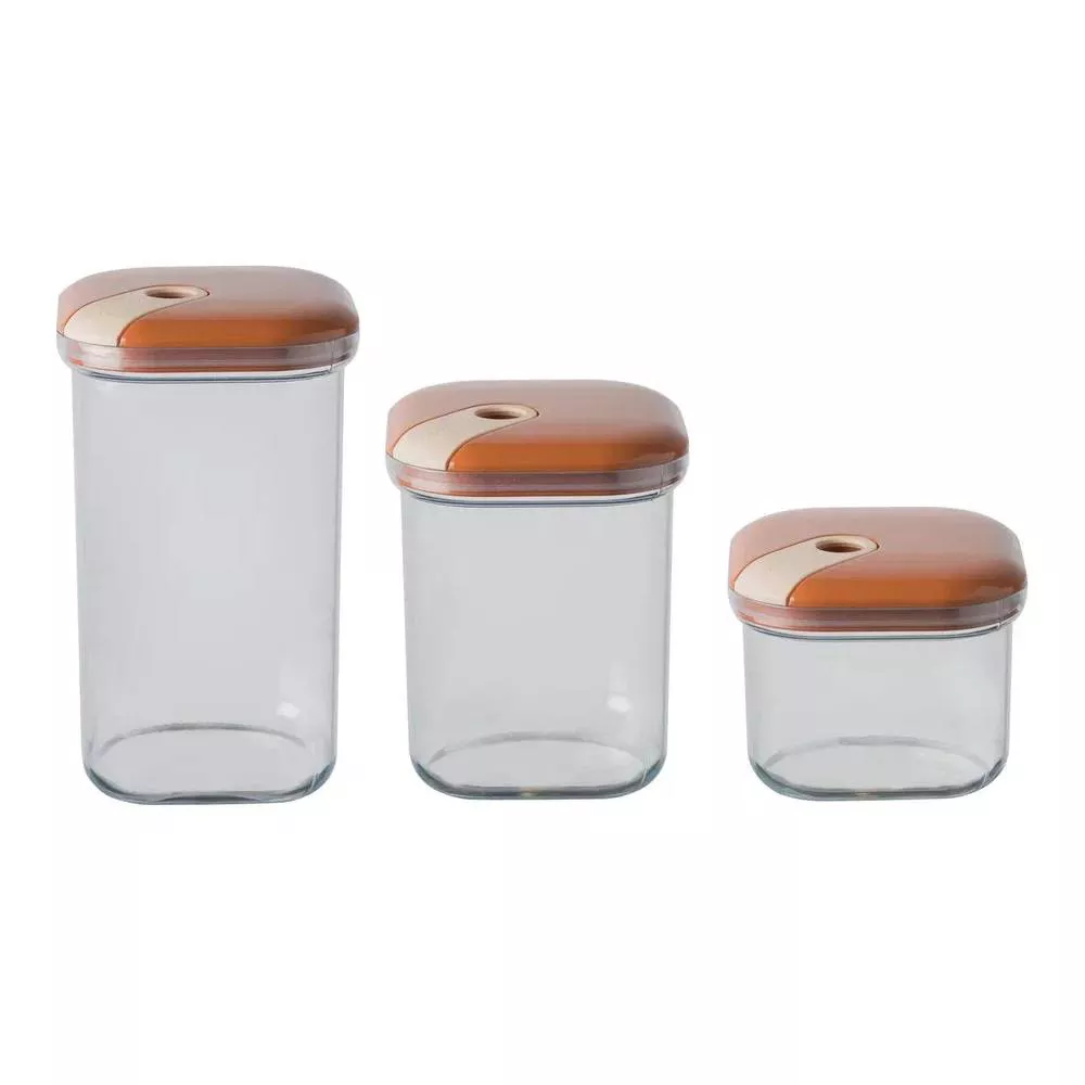 Набор банок для хранения Pull Box, 3 шт, пластик, оранжевый, Omada