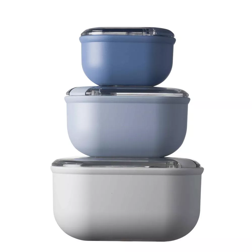 Набор квадратных контейнеров, 3 шт, 425мл/1000мл/2000мл, пластик, серый/синий, Omada