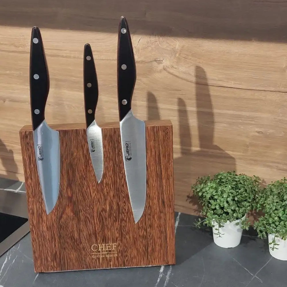 Подставка с магнитными держателями для 5-ти ножей Chef из дерева цвета орех