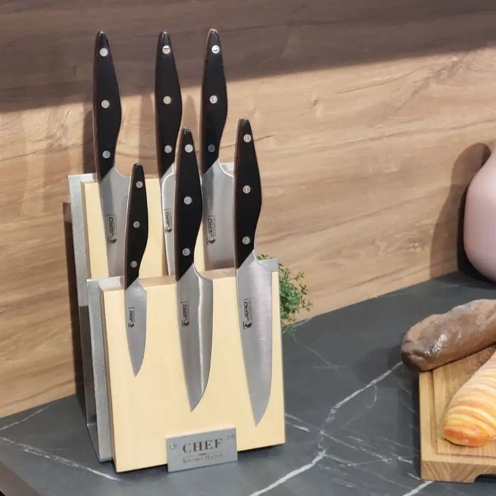 Подставка с магнитными держателями для 6-ти ножей Chef из дерева светло-бежевого цвета