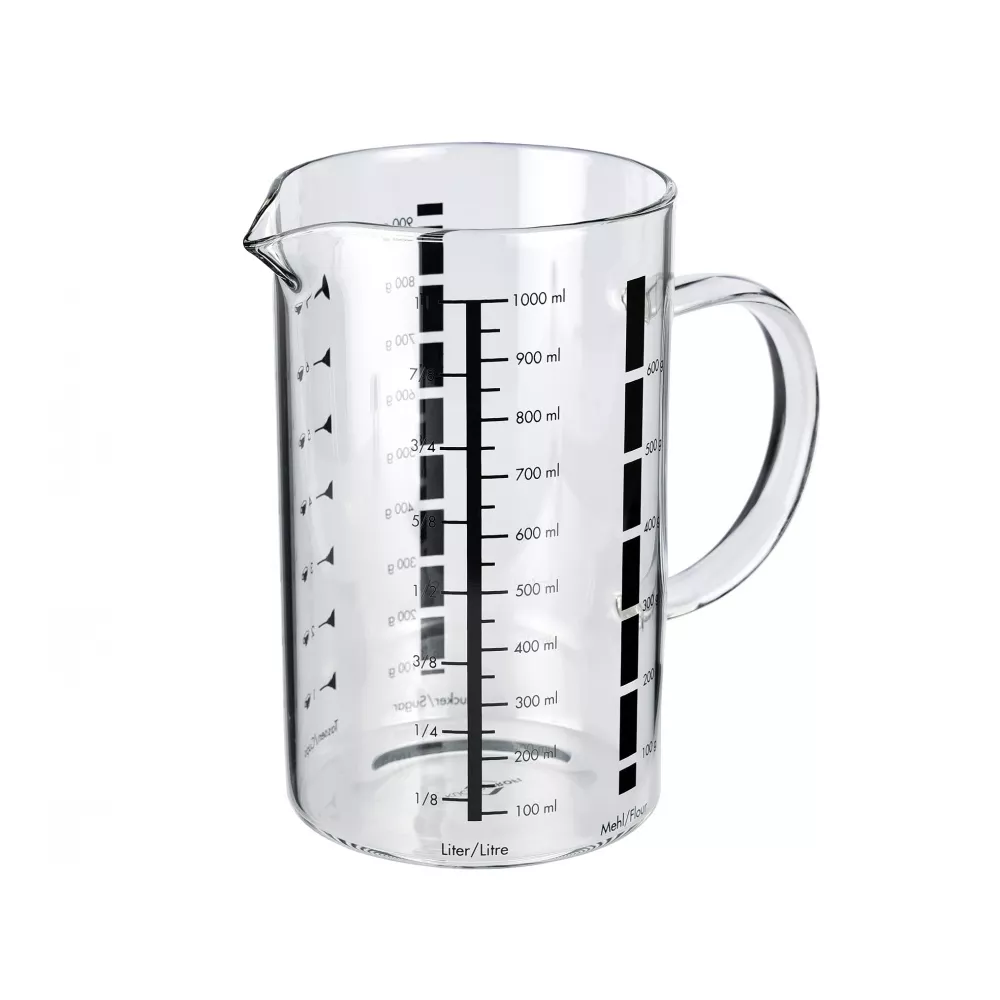 Стакан мерный с ручкой, d 10 см, h 16 см, 1000 мл, стекло, Kuchenprofi