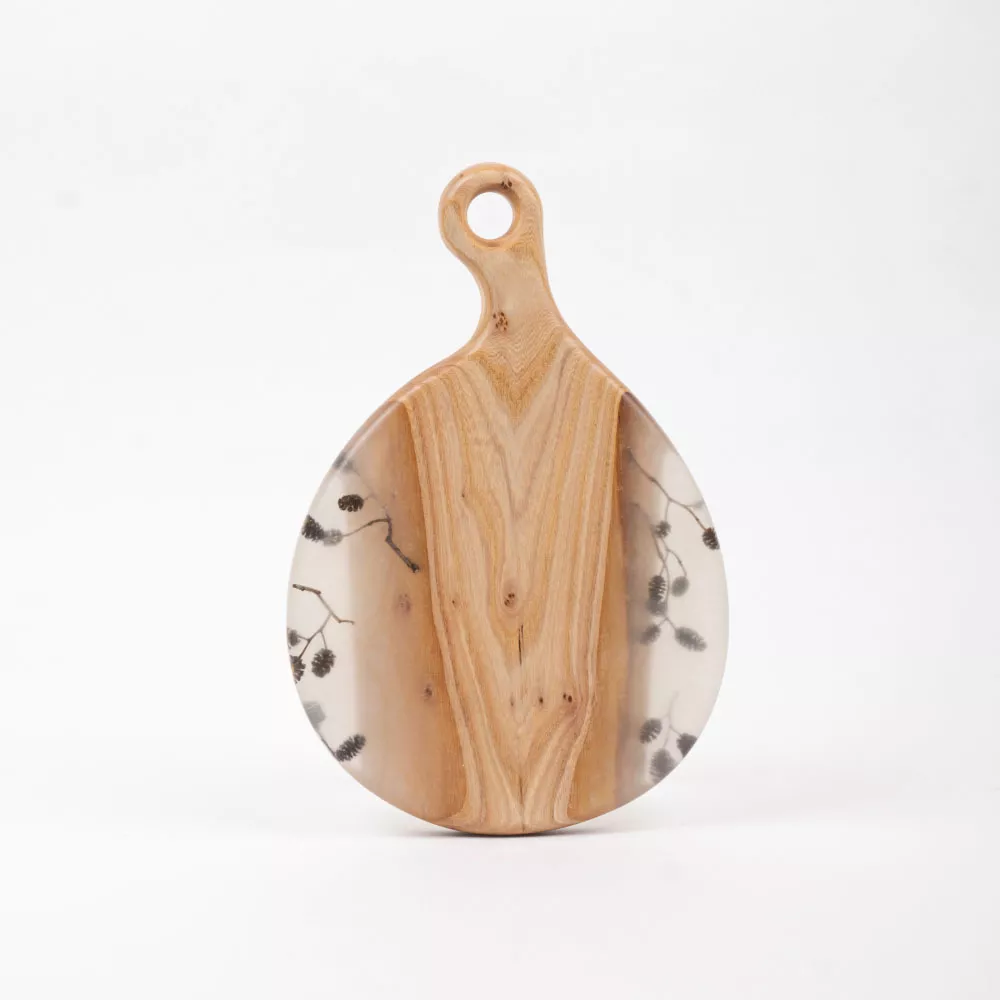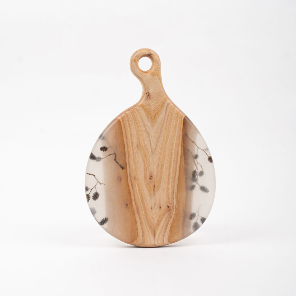 Доска сервировочная Ольха, 32х19 см, дерево/полимер, жемчужный, Мастерская Клименко