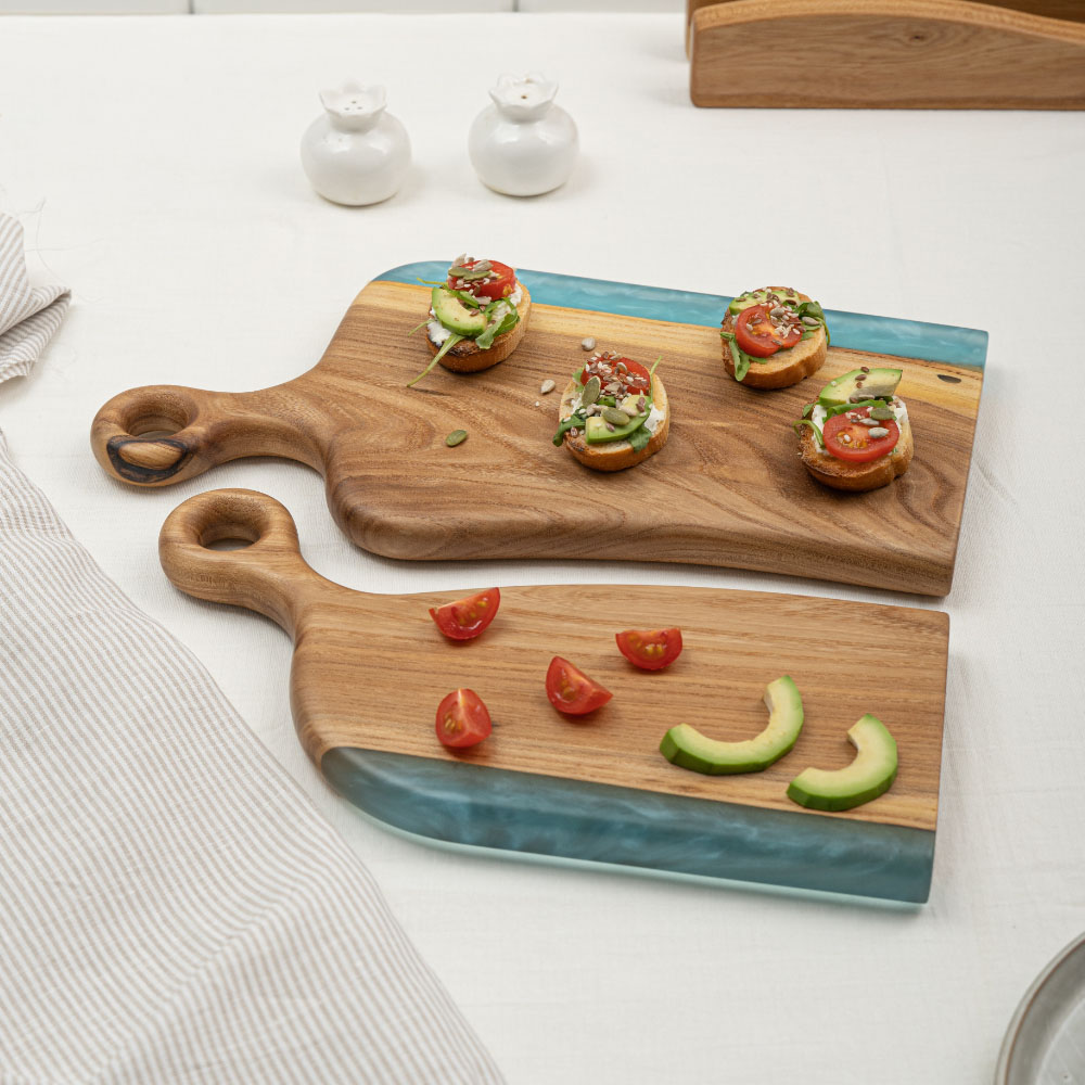 Комплект парных разделочных досок "Петр и Февронья", 37х31 см, 2 шт, дерево/полимер, бирюзовый, Мастерская Клименко