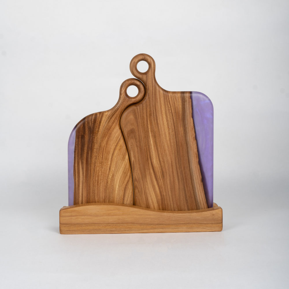 Комплект парных разделочных досок "Петр и Февронья", 37х31 см, 2 шт, дерево/полимер, лавандовый, Мастерская Клименко