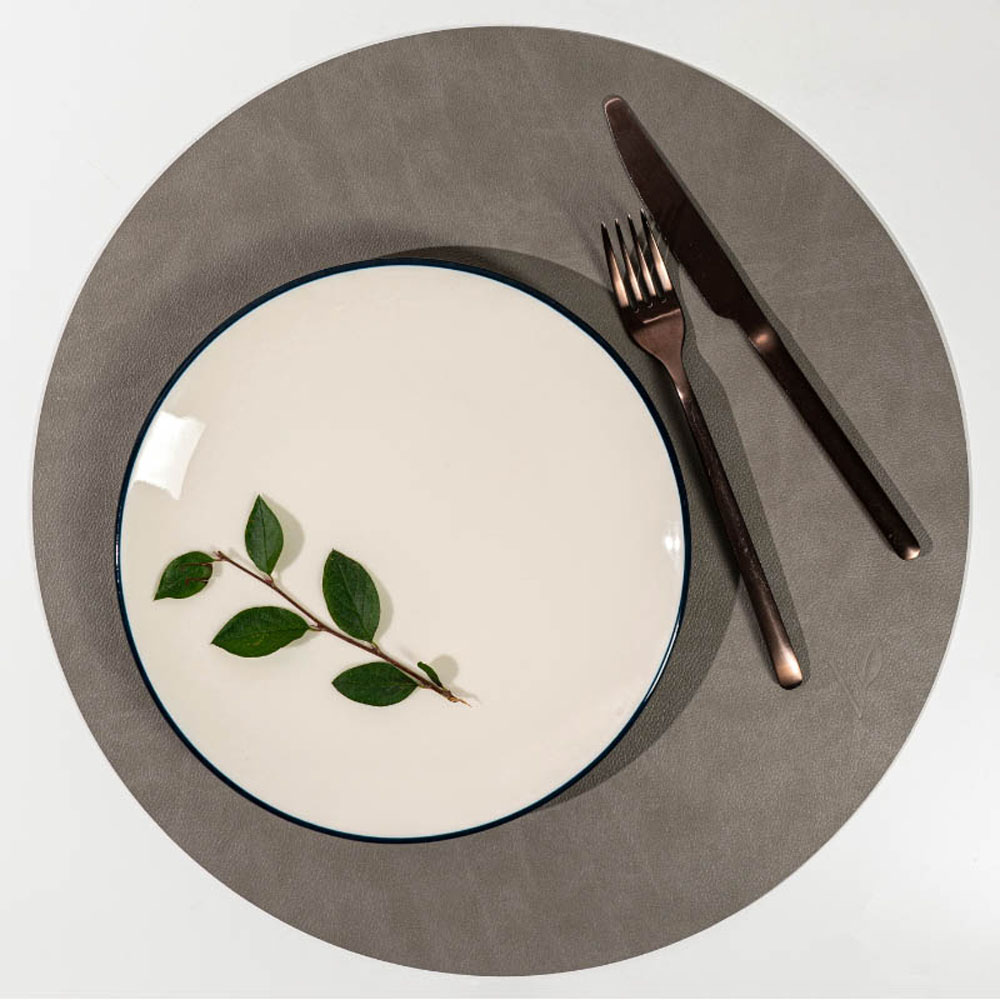 Салфетка подстановочная круглая, d 38 см, кожа/каучук, светло-серый, Vero