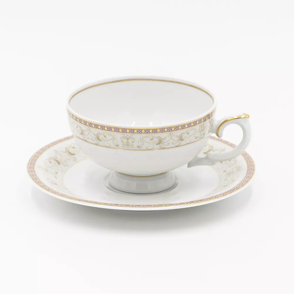 Пара чайная Бельведер, 210 мл, 1 персона, 2 предмета, белый/кремовый/отводка золото, фарфор, Weimar Porzellan