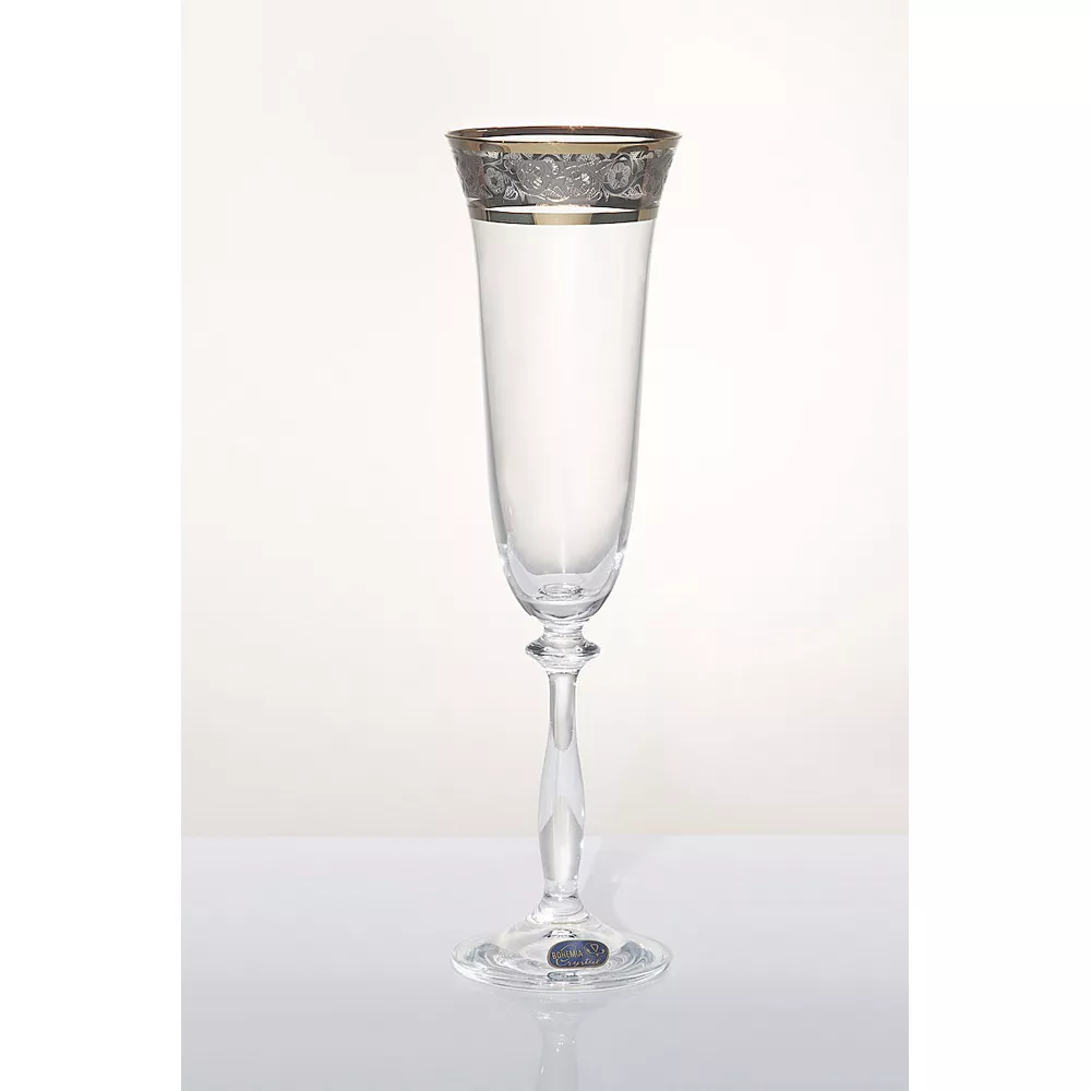 Набор бокалов для шампанского Анжела панто платина,золото 0,19 л, 6 шт, Bohemia Crystal