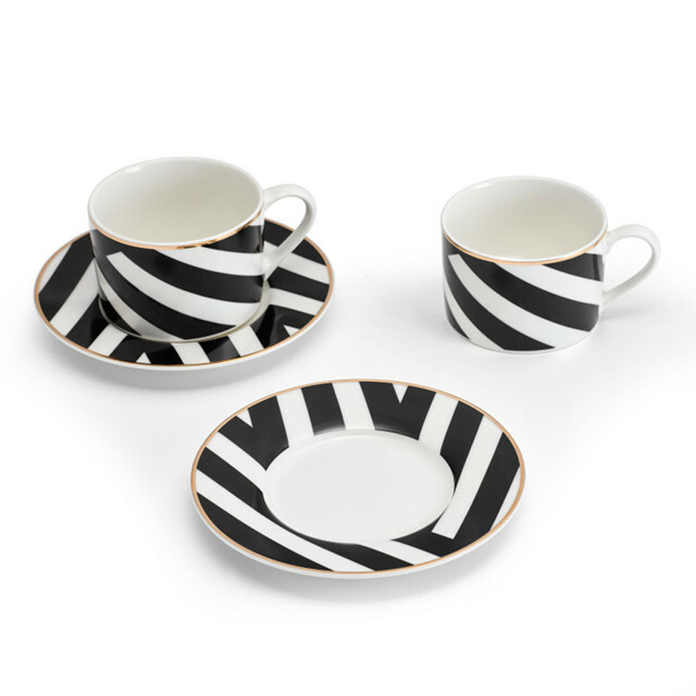 Чайная пара Mikasa Luxe Deco с геометрическим принтом, 2 персоны, 4 предмета, 200 мл, фарфор, KitchenCraft
