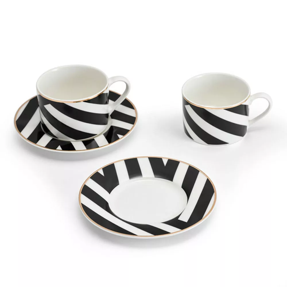 Чайная пара KitchenCraft Mikasa Luxe Deco с геометрическим принтом на 2 персоны 4 предмета