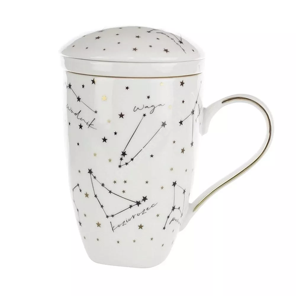 Кружка с фильтром Zodiak, 300 мл, фарфор, белый/черный/золотой, Porcelana Bogucice
