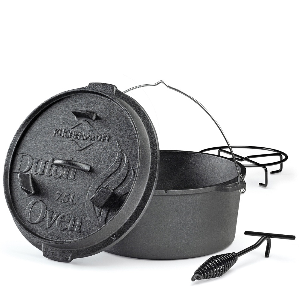 Казан с крышкой, d 30 см, 7,5 л, чугун, черный, Kuchenprofi
