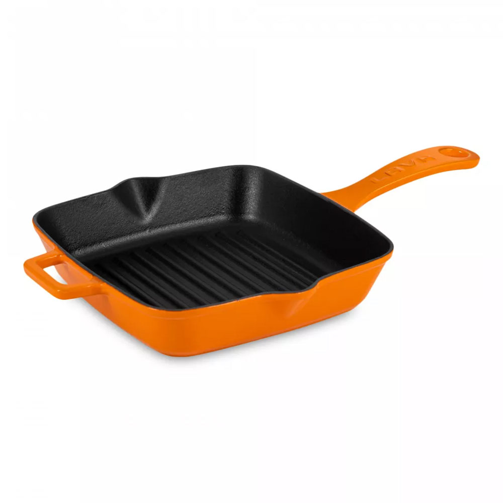 Сковорода-гриль, 20х20х4 см, 1,1 л, чугун/эмаль, оранжевый, Lava