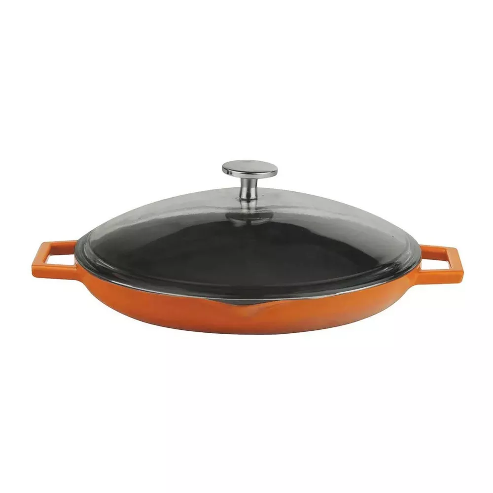 Сковорода с крышкой, две ручки, d 26 см, h 6 см, 1,4 л, чугун/эмаль, оранжевый, Lava