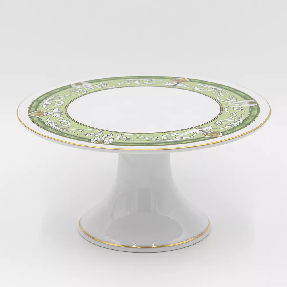 Тортница на ножке Бельведер, d 24 см, белый/зеленый/отводка золото, фарфор, Weimar Porzellan