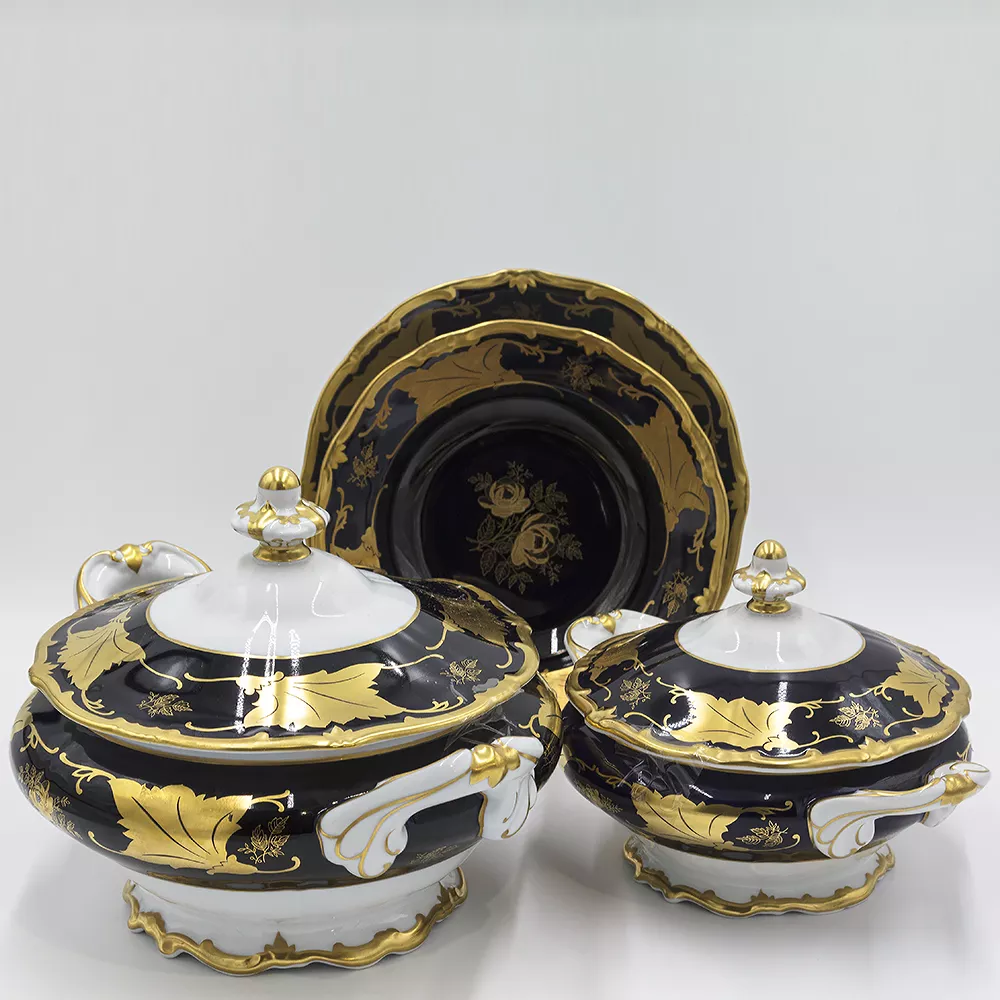 Сервиз столовый Кленовый лист кобальт, 132 предмета, синий/золотой/белый, фарфор, Weimar Porzellan