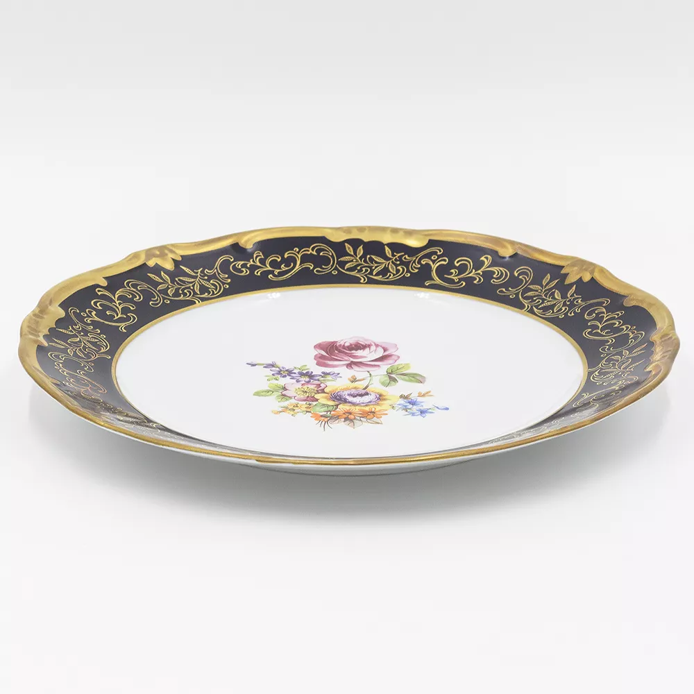 Набор тарелок Санкт Петербург Кобальт, d 24 см, 6 шт, синий/белый/золотой/цветы, фарфор, Weimar Porzellan