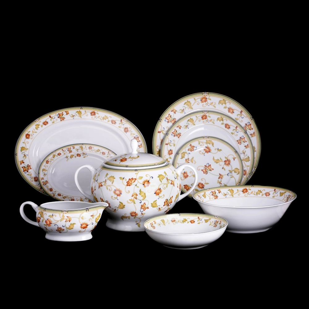 - Состав комплекта:: Супница 2,5 л-1 шт, крышка от супницы-1 шт, салатник 25 см-1 шт, блюдо овальное 35 см-1 шт, блюдо овальное 25 см-1 шт, блюдо круглое мелкое 30 см-1 шт, соусник 400 мл-1 шт, тарелка мелкая 25 см-6 шт, тарелка глубокая 22,5 см-6 шт, тарелка десертная 19 см-6 шт.