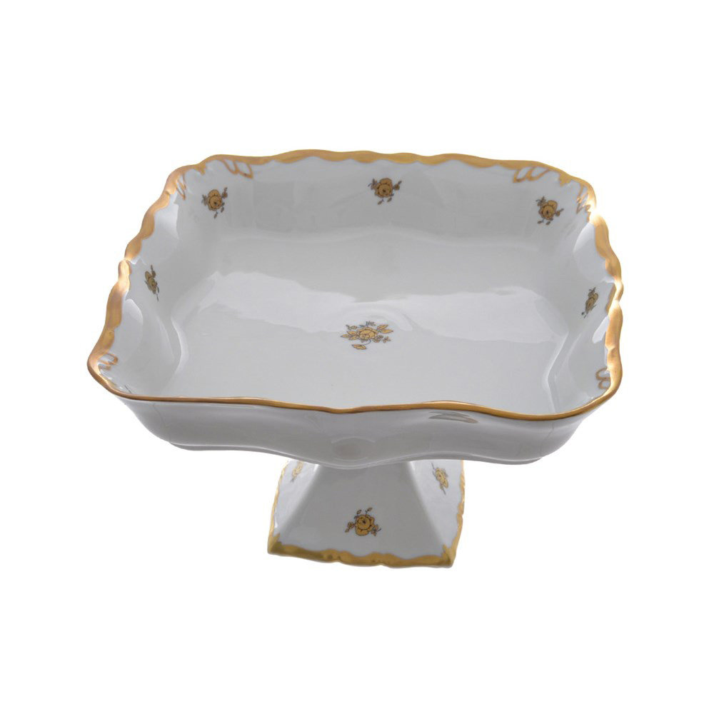 Блюдо квадратное на ножке Золотая роза 23 см, Queen's Crown