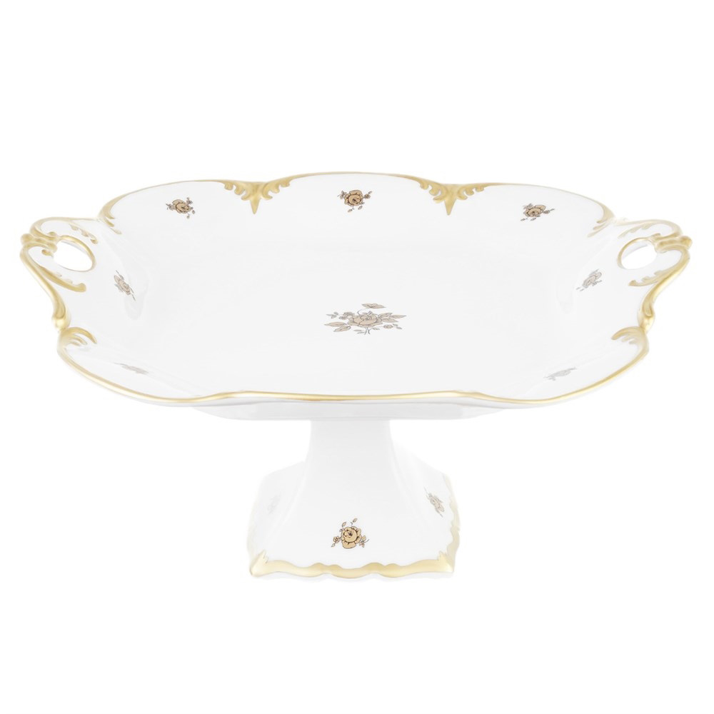 Блюдо квадратное на ножке Золотая роза 32 см, Queen's Crown