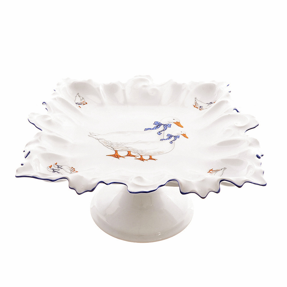 Блюдо квадратное резное на ножке Гуси 32 см, Queen's Crown