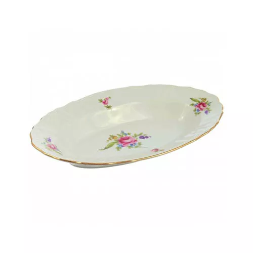 Блюдо овальное Мейсенский букет 24 см Отводка платина, Thun