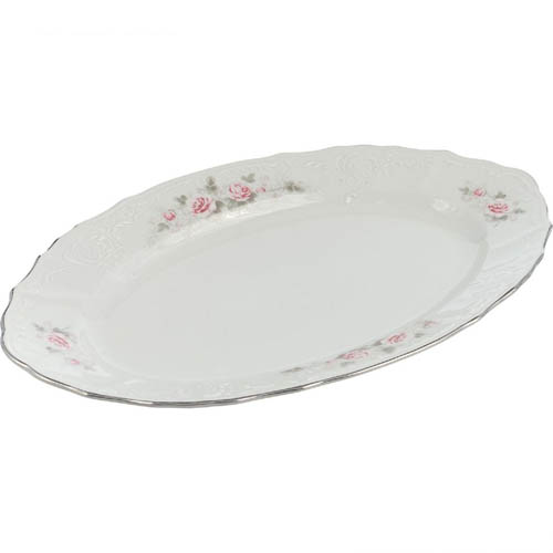 Блюдо овальное Бледные розы, отводка платина 34 см, Thun