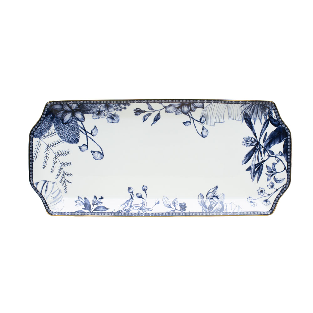 Блюдо сервировочное Синий луг, прямоугольное, 36х16,2 см, фарфор, Homefeel