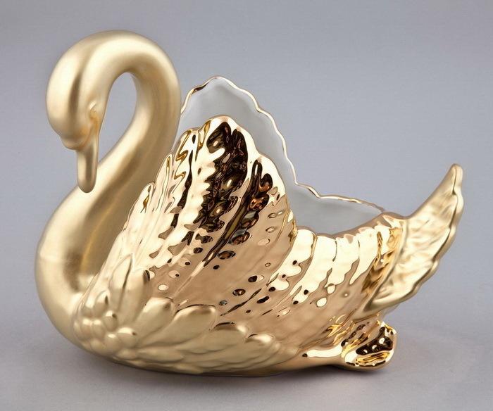 Конфетница Лебедь, h 17 см, золотой, Rudolf Kampf