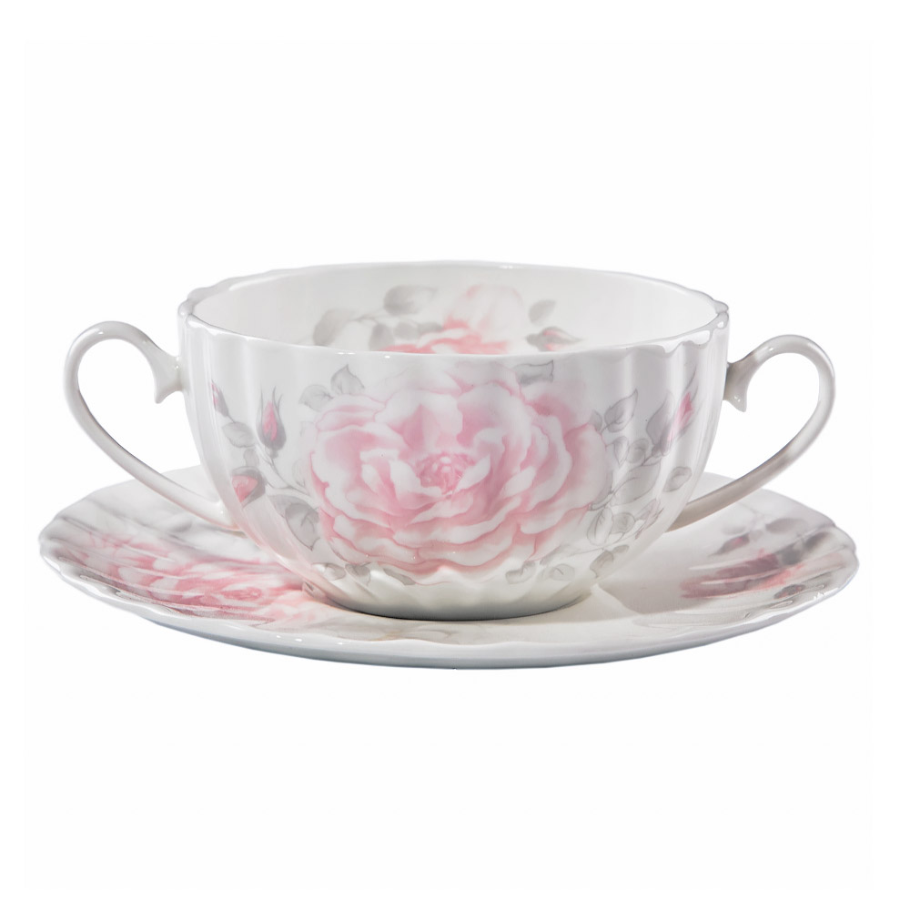 Бульонка с блюдцем Hatori Шиповник 370 мл