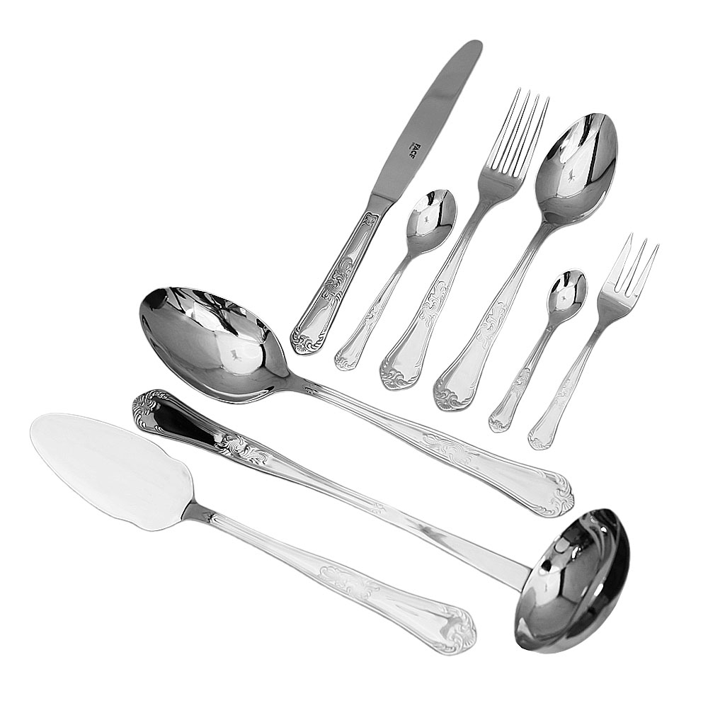 - Состав комплекта:: Состав набора: ложка столовая - 12 шт, вилка столовая - 12 шт, нож столовый - 12 шт, ложка чайная - 12 шт, ложка кофейная - 12 шт, вилка десертная - 12 шт, половник - 1 шт, ложка сервировочная - 1 шт, лопатка - 1 шт.