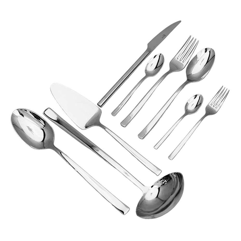 - Состав комплекта:: Состав набора: ложка столовая - 12 шт, вилка столовая - 12 шт, нож столовый - 12 шт, ложка чайная - 12 шт, ложка кофейная - 12 шт, вилка десертная - 12 шт, половник - 1 шт, ложка сервировочная - 1 шт, лопатка - 1 шт.