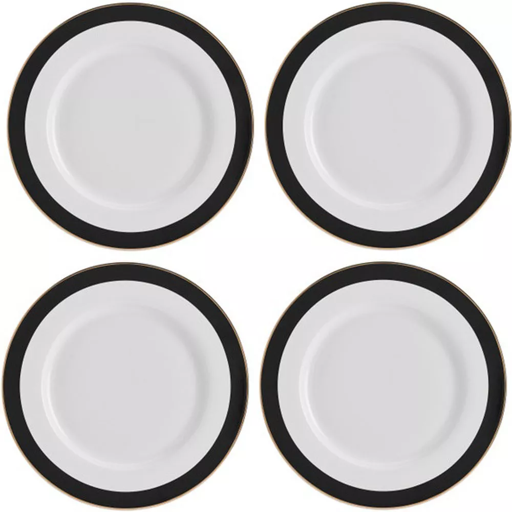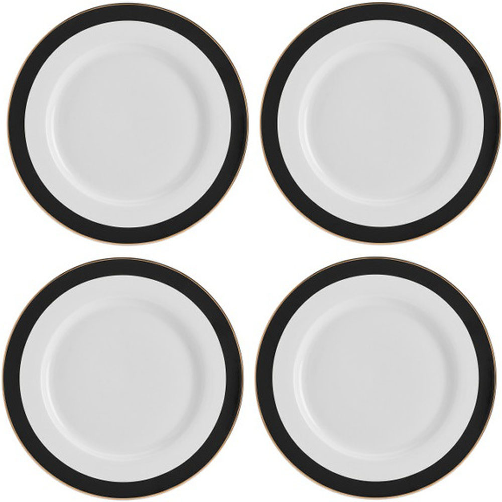 Набор тарелок Mikasa Luxe Deco d 27,5 см, 4 шт, черный/белый, фарфор, KitchenCraft